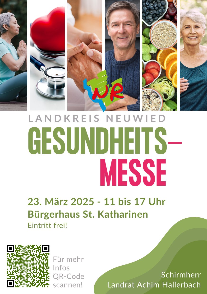Am 23.03.2025 findet die 1. Gesundheitsmesse des Landkreises Neuwied in 53562 St. Katharinen, Bürgerhaus, Linzer Straße 74, statt.
