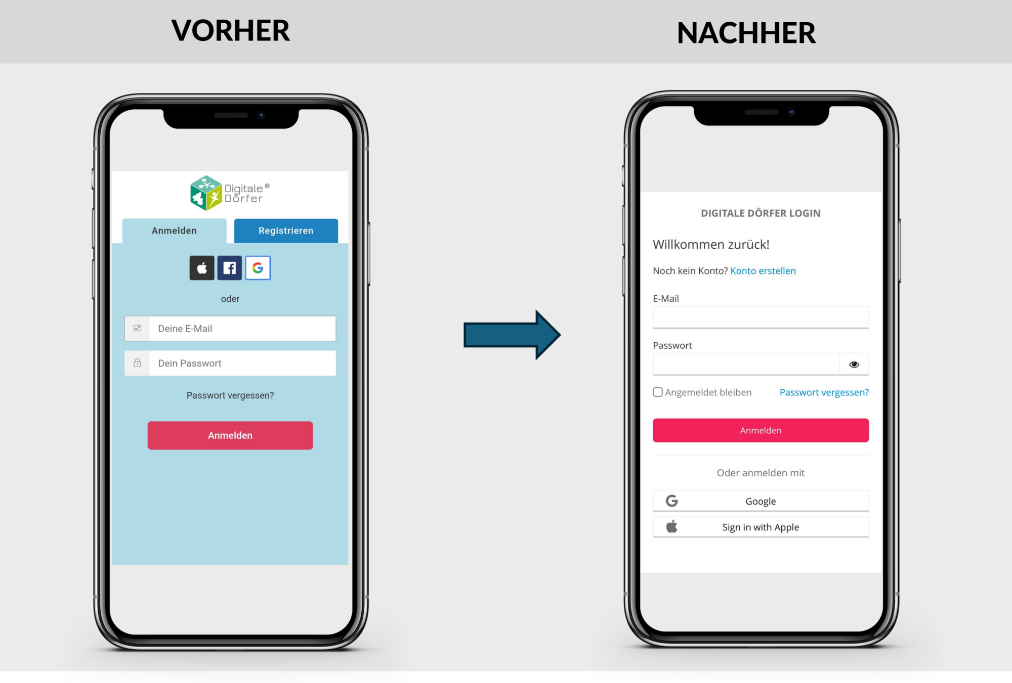 Nach dem Update könnt ihr euch einfach mit euren Anmeldedaten (E-Mail und Passwort oder Google/Apple Login) anmelden.