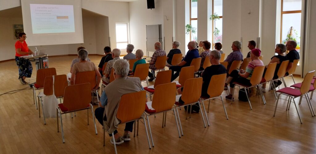 Im Sozialrecht konnte Elisabeth Klein vom SKFM Neuwied e.V. ihre lebens-wichtigen Informationen zum Thema „Vorsorgevollmacht und Betreuungsverfügung“ am 19.6.24 und zum Thema „Patientenverfügung“ am 26.6.24 an aufmerksame Teilnehmergruppen von jeweils über 20 Personen weitergeben. Lebensthemen wie die Haltung zu Krankheit und Sterben fallen uns nicht leicht, wie es sich auch in den beiden Veranstaltungen gezeigt hat. Aber sie gehen uns alle an, Alt und auch Jung, denn die Wechselfälle des Lebens überraschen uns nicht selten unerwartet und dann ist es gut vorbereitet zu sein.