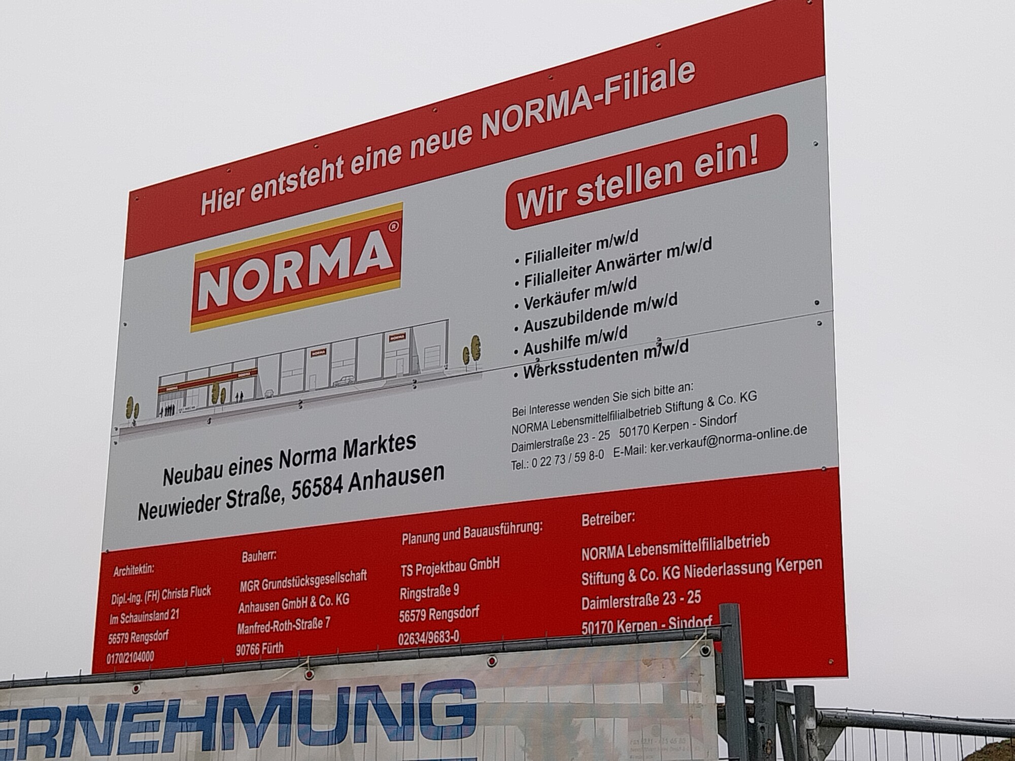 Anbei neue Fotos von der Baustelle Normamarkt. Es geht weiter gut voran.Die Außenwände werden zurzeit gemauert.