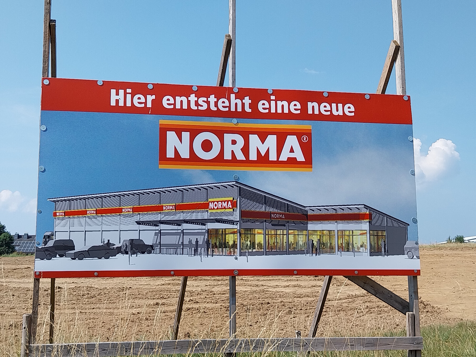 Tag 1 auf der Baustelle des künftigen Normamarktes. Anfang September war angekündigt und Norma hat geliefert. Die Bauarbeiten haben begonnen.